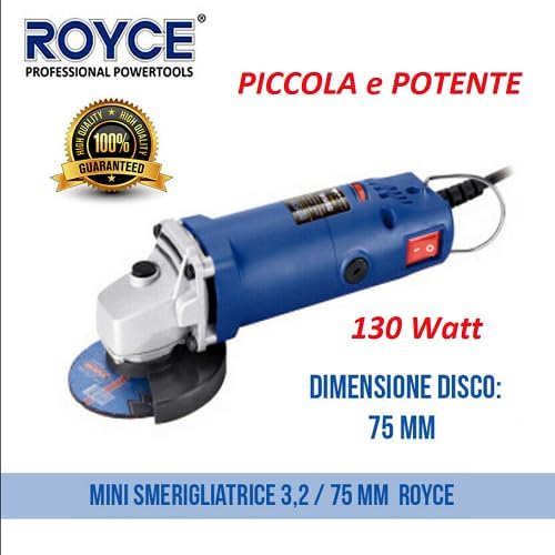 • MINI FLEX SMERIGLIATRICE ANGOLARE ROYCE FAI DA TE 75 MM MULTIFUNZIONE DISCHI BRICOLAGE