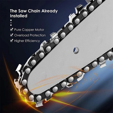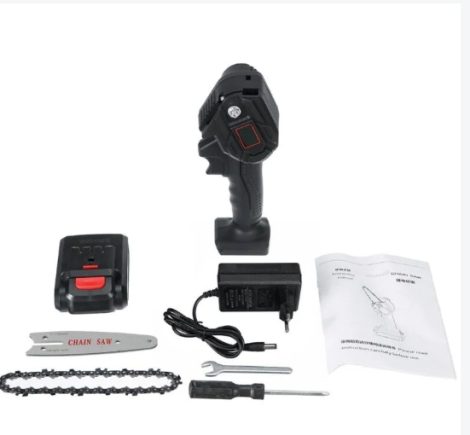 La mini motosega a  batteria ha un potente motore , utilizza una catena di alta qualità in acciaio per  garantire un taglio regolare.  Comoda impugnatura ergonomica, rivestimento antiscivolo . Realizzata con tutte le norme di sicurezza.  La batteria è di 24V e funziona per circa 30-40  minuti a seconda del tipo di materiale da tagliare. La velocità della catena è pari a 5m/s consente di tagliare tronchi fino a 10cm di diametro in meno di 10/15 secondi. Si consiglia di ricaricare la batteria dopo ogni utilizzo e di toglierla quando non è in uso. Pesa poco più di 1kg ed è ideale da usare con una sola mano, adatta per uomini, adulti, donne e anziani. Doppia Batteria.