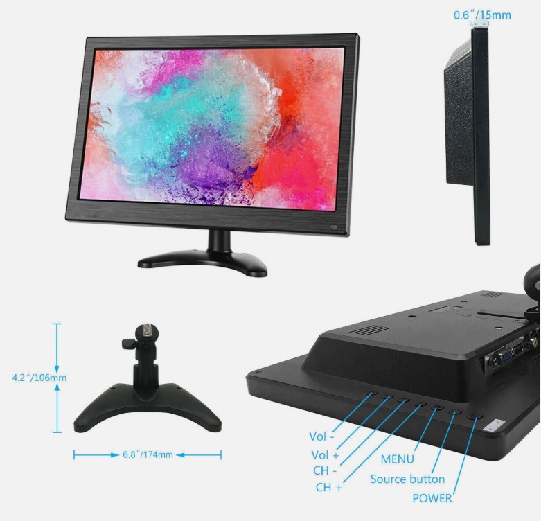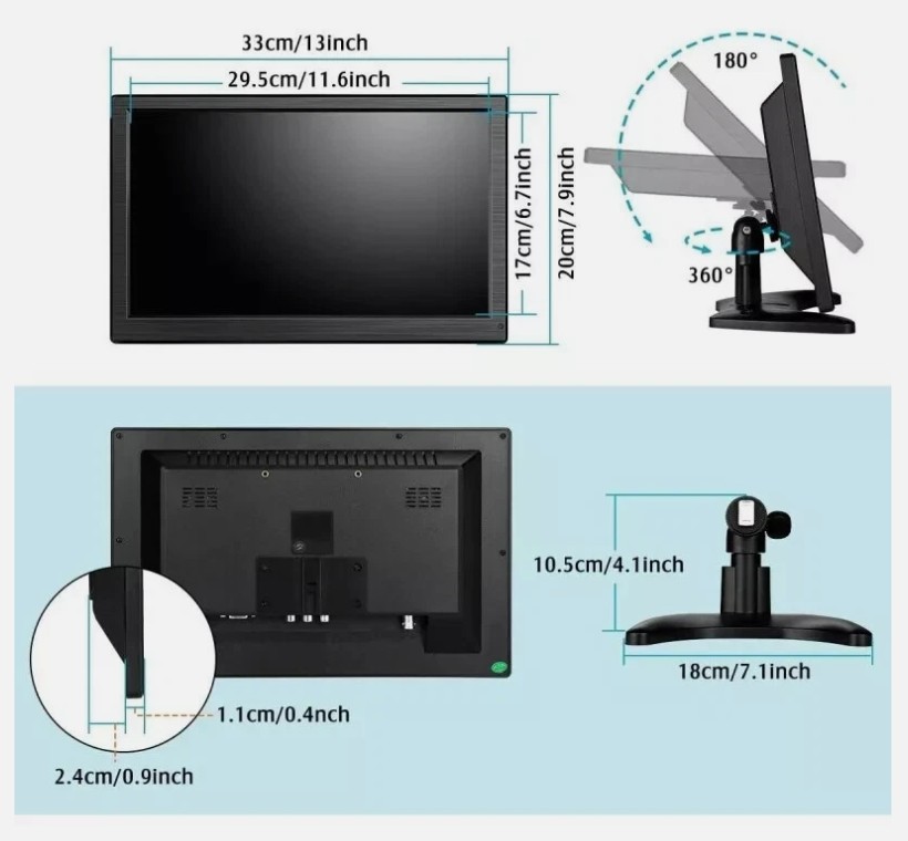Monitor 13.3″ pollici full HD per telecamere display led TFT videosorveglianza