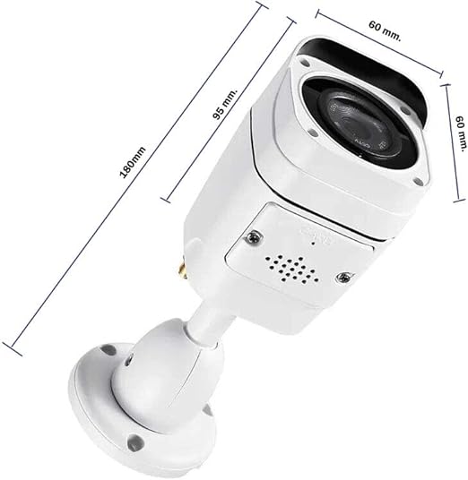 Telecamera in metallo ,bianca, di dimensioni 17 x 6 x 6 cm; 606 grammi, rettangolare.