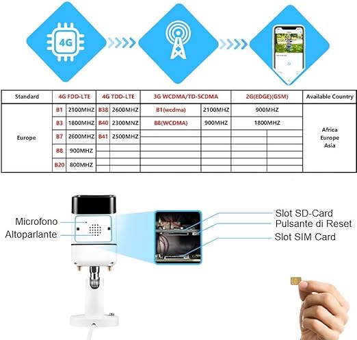Telecamera GSM IP 5MP 4G GSM , registra su sim card con audio IP66,bidirezionale, funziona anche con linea internet assente, sia esterna che interna.